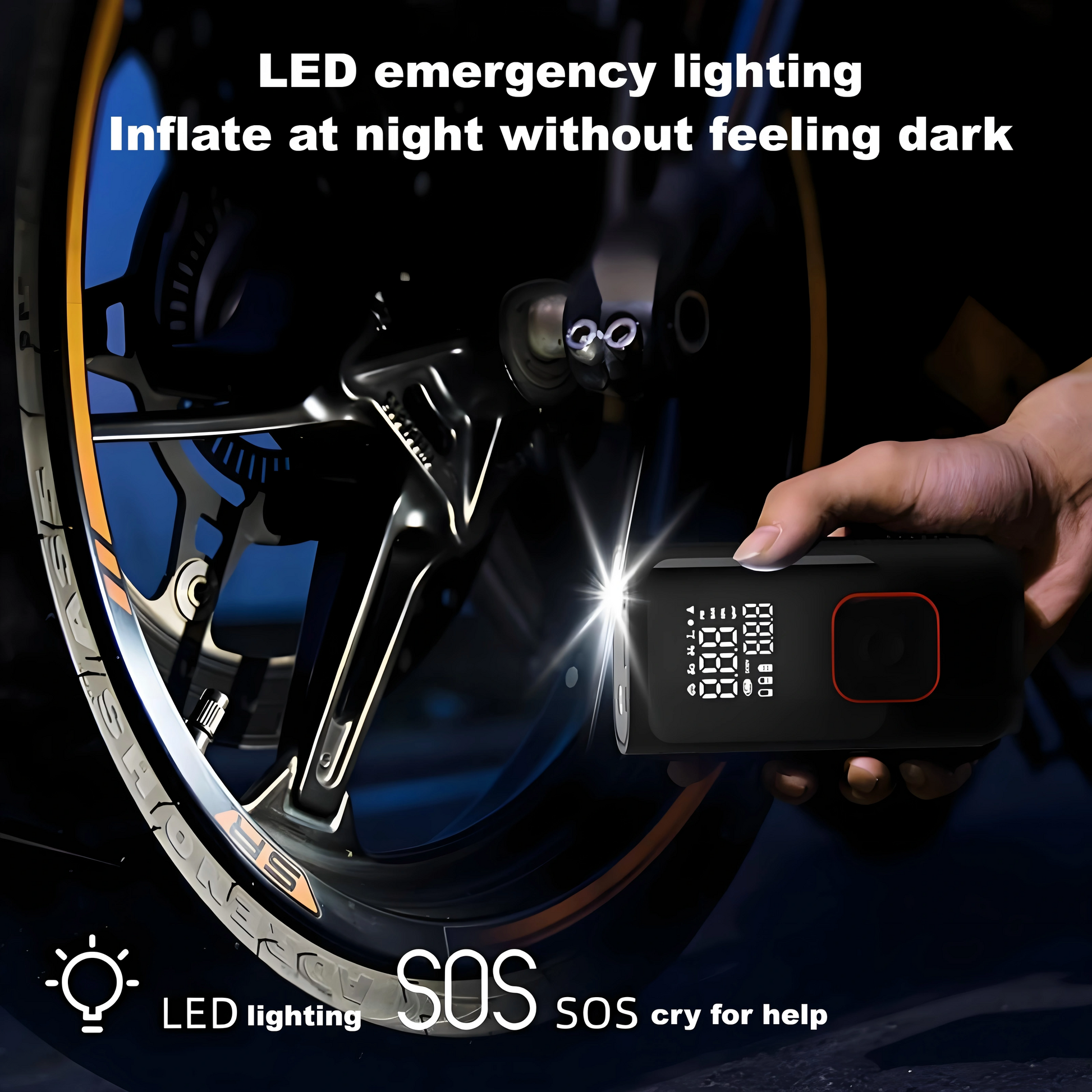 PQ402 Portable Electric Air Compressor with Tire Pressure Gauge for Car Bike Motorcycle Multifunctional Inflator